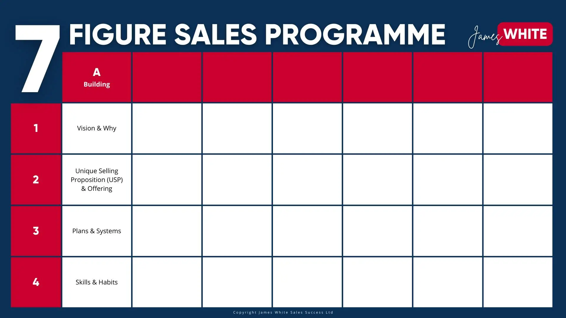 Remember, the path to sales success doesn’t happen by accident — it’s built step by step, brick by brick. Start with your Vision and Why, craft a compelling USP and service offering, put plans and systems in place, and sharpen your skills and habits.